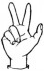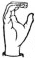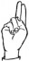 На ћирилици написано ВУКОСЛАВ ГЕОРГИЈЕВ састоји се из 17 слова [?]. Исписано ћириличном једноручном азбуком за глувонеме: